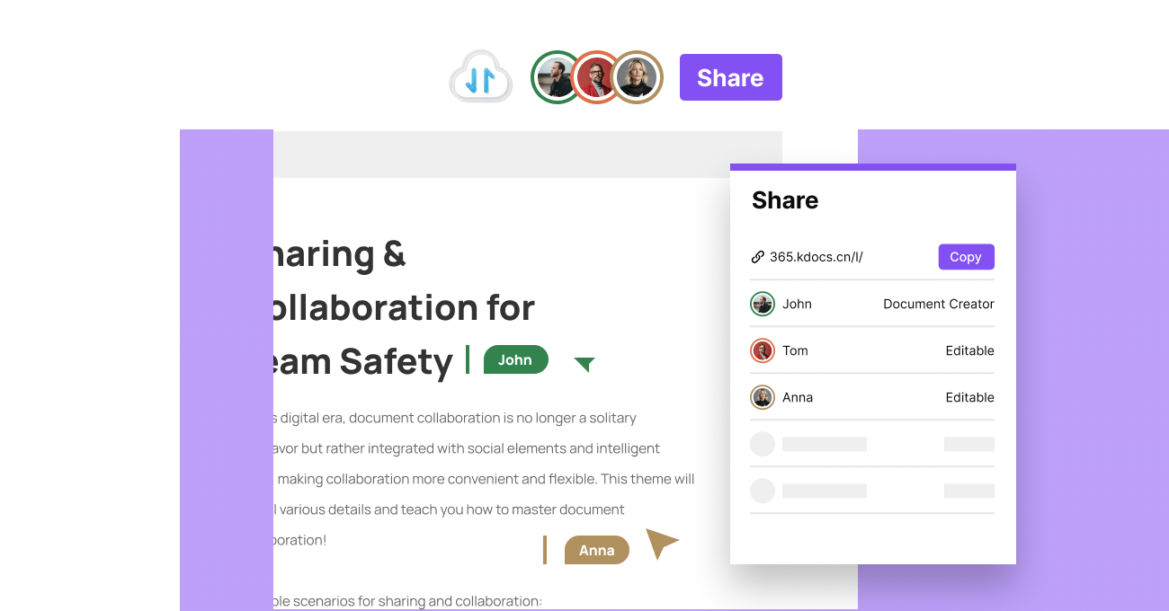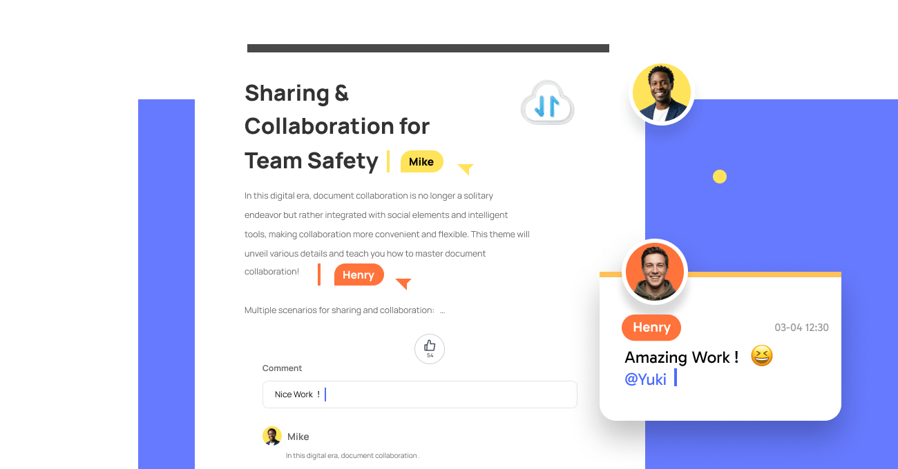 Modifica i documenti insieme in tempo reale. Lascia commenti, usa emoji, segui i cursori e traccia ogni modifica all'istante con WPS Cloud.