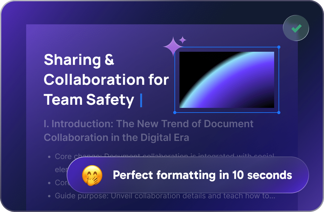 Ottimizza automaticamente i layout di Word, migliora le tabelle di Excel e perfeziona le diapositive di PowerPoint. Pulito, coerente e pronto per la presentazione all'istante.