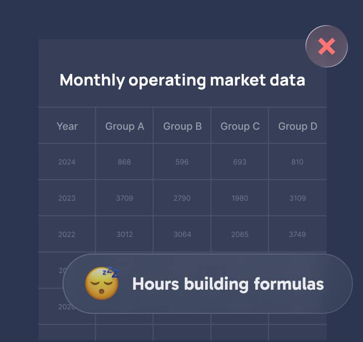 Ordina manualmente. Costruisci grafici da zero. Riferimenti incrociati tra i fogli. Ore perse nei fogli di calo.